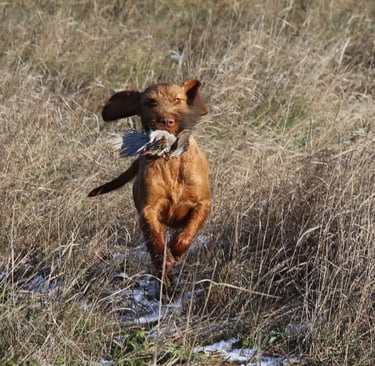 Owned by Zöldmáli Kennel, Irma has come to us expecting a litter by Zöldmáli Extreme. Admired from the time she was a puppy, Irma is the fruition of years of planning since meeting her maternal grandmother Zöldmáli Bringa years ago. Each trip to Hungary I would say, I think Irma will fit in my suitcase and this fall she finally did! An extraordinarily kind and gentle soul, Irma has fit right in. She comes with more work and show titles than I can list and was the 2022 Wirehaired Vizsla of the Year in Hungary. We can not wait to take her grouse and chukar hunting here and treasure her as part of the family.